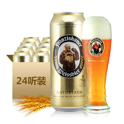 • 商品名称:德国啤酒原装进口 慕尼黑富兰教士纯麦白啤酒 500ml*24听