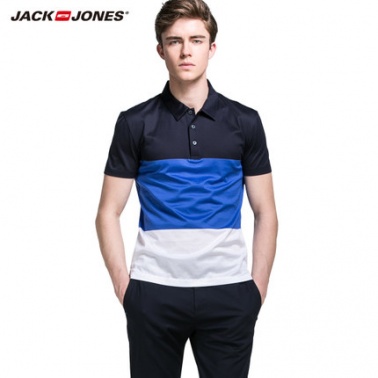 人气5折杰克琼斯夏纯棉条纹撞色POLO衫短袖T恤